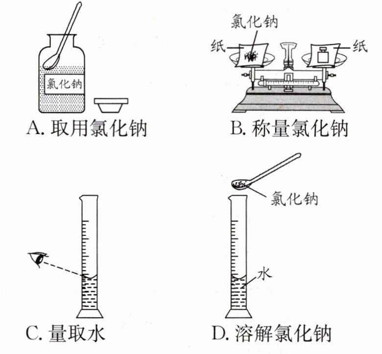 11. [2024·巴中]氯化钠溶液常用于农业选种。实验室配制氯化钠溶液的相关操作正确的是( )
