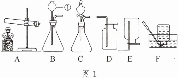 (1)请写出仪器①的名称:____。实验室利用装置 A 制取氧气,试管口略向下倾斜的原因是____,反应的符号表达式为____;若用装置 F 收集氧气,发现氧气不纯,可能的原因是____。