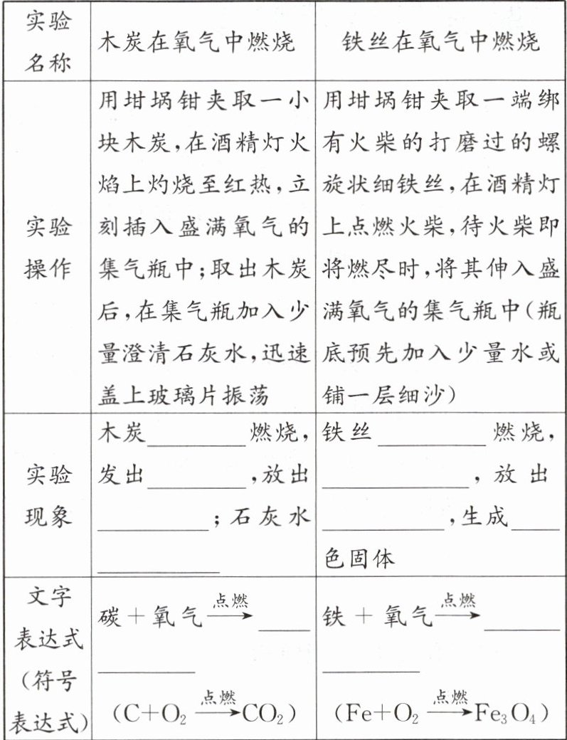@@3.剧烈 白光 热量 变浑浊 剧烈 火星四射大量的热 黑 二氧化碳 四氧化三铁