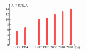 根据表中数据,在图中绘制我国七次人口普查的人口柱状统计图。