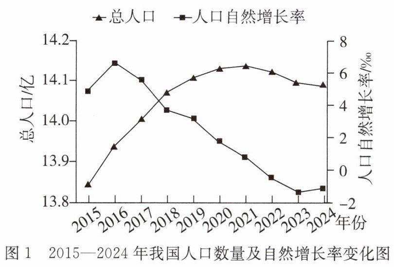 (1)图示时期内,我国人口总数最多的年份是______年,出现负增长的年份是______年。