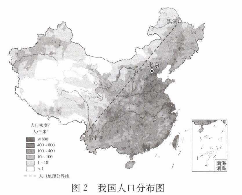 3. 某中学地理兴趣小组结合相关图文资料,对我国人口数量、人口分布和人口政策做研究性学习,请和兴趣小组一起完成过程化探究。