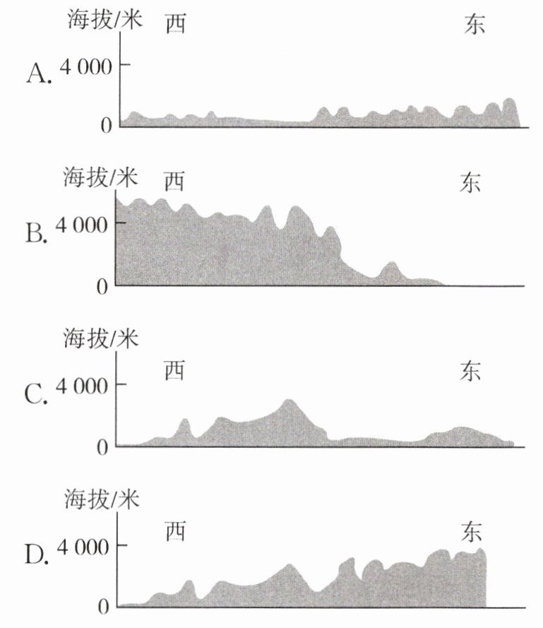 1. 下列地形剖面图,能反映沿 $30^{\circ}N$ 地势起伏状况的是( )