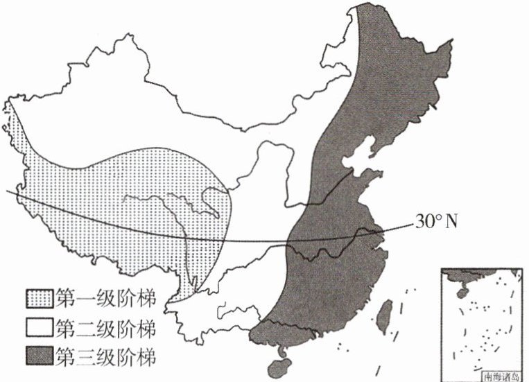 (1)横断山脉是我国地势第______级和第______级阶梯分界线,其西侧地形区为______。