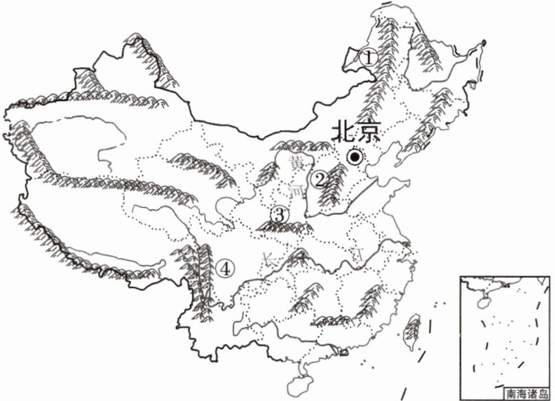 我国山脉众多,山脉将我国分割成不同的地形区。读图,完成3~5题。
