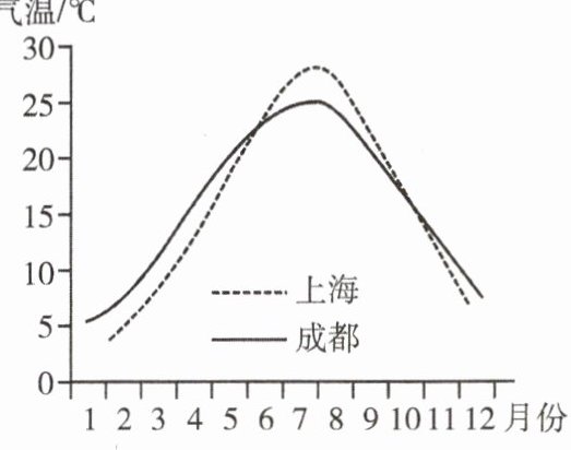 4. 成都与上海纬度相近,但成都的冬季气温比上海高,主要原因是______。