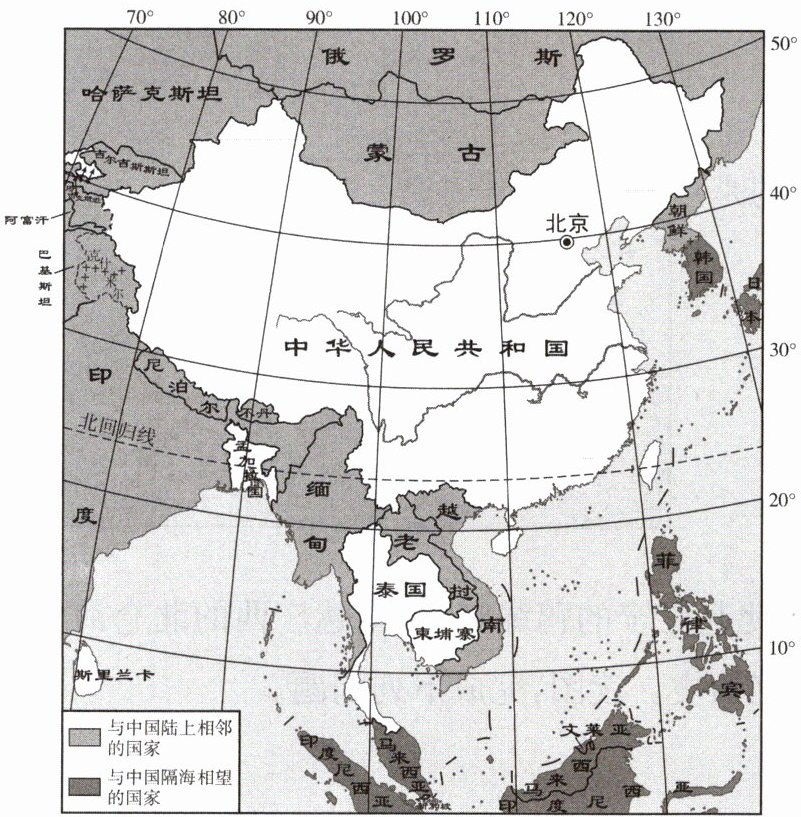A. 我国南临印度洋 B. 我国西部深入亚欧大陆内部
