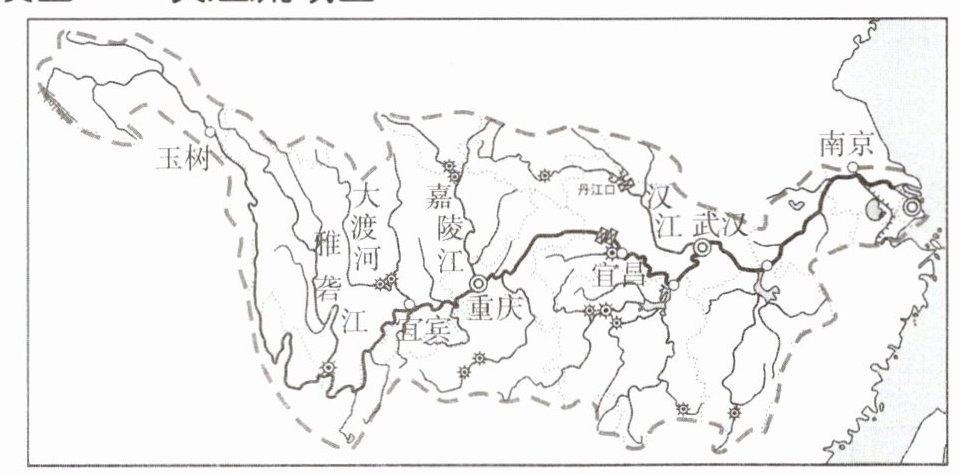 例2 长江从青藏高原的涓涓细流,出群山、纳万川,浇灌延绵良田,孕育中华文明。读长江流域示意图,完成下列问题。