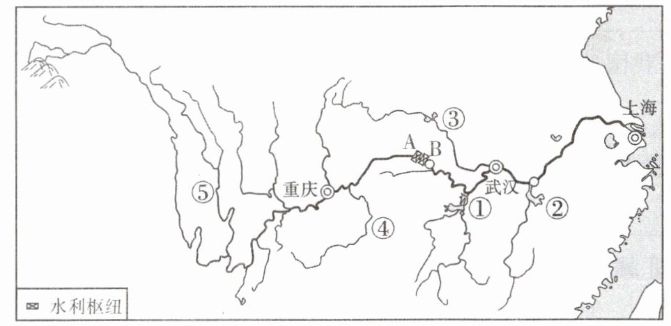 2.①洞庭 ②鄱阳 ③汉 ④乌 ⑤雅砻A三峡 B葛洲坝
