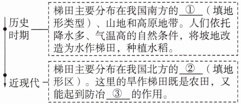 (1)比较南北方梯田的差异,完成下列填空。