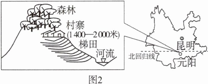 3. 土地是人类的衣食之源、立国之本。图1为我国连片面积较大的梯田分布示意图,图2为云南省元阳梯田。阅读图文材料,完成下列问题。