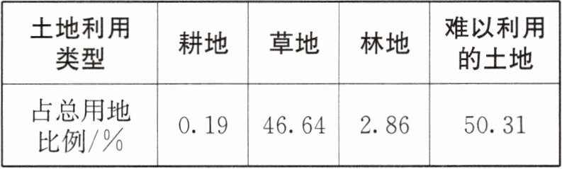 土地利用空间结构反映了一定地域内特殊的自然环境对人类活动的影响,是人们对当地土地结构认识的积累和对当地土地特点利用改造的结果。下表为我国某地土地利用结构统计表。据此完成1~2题。