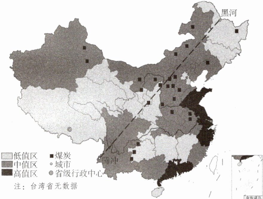 我国是世界第一煤炭消耗大国,也是世界第一产煤大国。下图为 2022 年我国用电量及主要煤炭分布图。