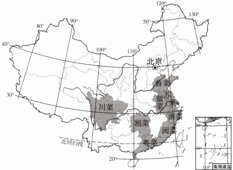 (4)我国菜系众多,试分析其与我国纬度位置的关系。