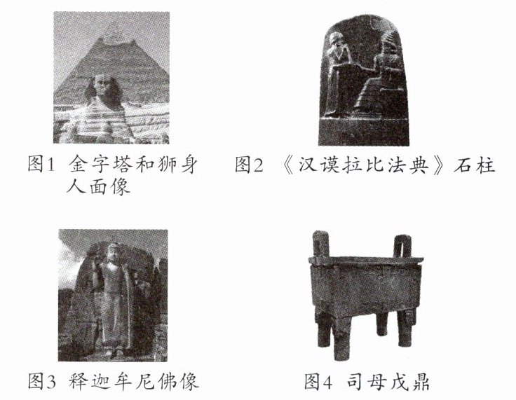 (1)(示例)选择图片1。金字塔是古埃及文明的象征,反映了古埃及社会经济发展的较高水平,是古埃及人智慧的结晶,可以作为研究古埃及历史的第一手史料。