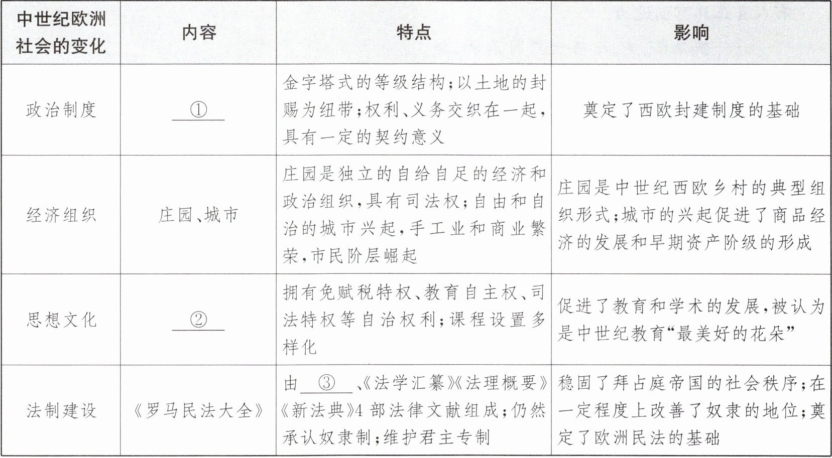 大学兴起(③);《查士丁尼法典》编成(②);基督教产生(①)