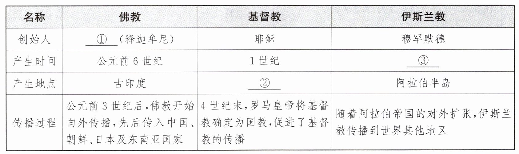 【单元知识架构】①乔达摩·悉达多 ②巴勒斯坦地区 ③7世纪初