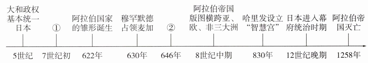 【找一找】填写对应序号:日本大化改新开始( );伊斯兰教创立( )