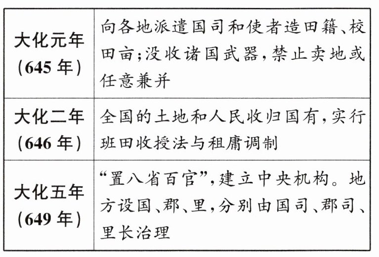 2. 下表为日本大化改新的部分举措。这些举措的实施( )