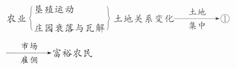 例1 下图是某同学在预习“西欧经济和社会的发展”一课时设计的部分知识结构图,其中①处应填入的内容是( )
