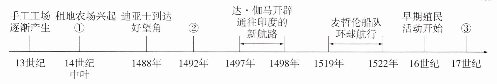 【找一找】填写对应序号:“三角贸易”兴起( );哥伦布“发现”美洲( );文艺复兴运动兴起( )