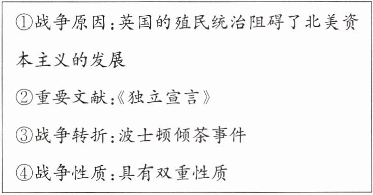 3. 小明在学习“美国的独立”一课时做了如下笔记,其中不正确的是( )