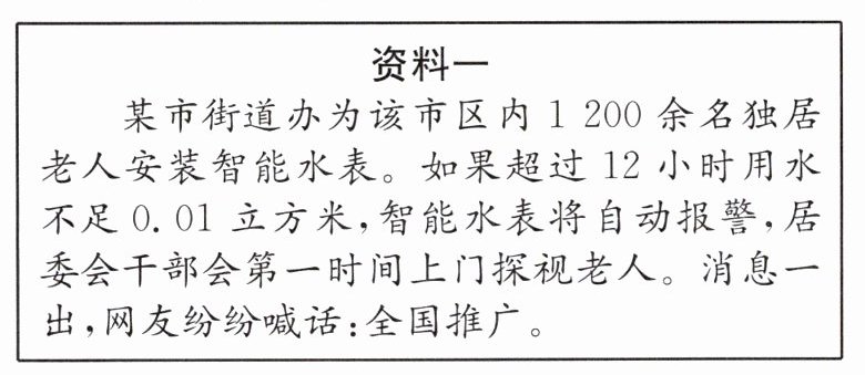 (1)①这项举措有利于保障独居老人的生命和健康,使他们更好地享受晚年生活,更充分感受到社区、社会的温暖。②这是充分利用现代科技进步对“互联网+”的智慧养老服务的探索。③这是践行以人民为中心的发展思想的惠民举措等。