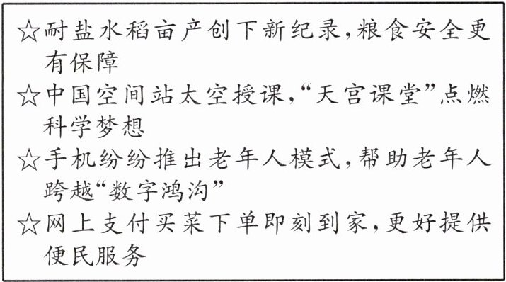 3. 原创 中考新形式·主题交流 某校九年级一班同学围绕“改革创新谱新篇”开展了一次主题交流活动,请你参与并完成下列任务。