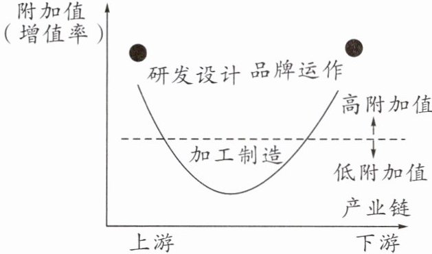 1. 跨学科·数学 产业微笑曲线(如图)是一条微笑的嘴型曲线。它反映了在产业链中获利更多体现在两端,中间环节的获利最低。产业微笑曲线对我国发展的启示有( )