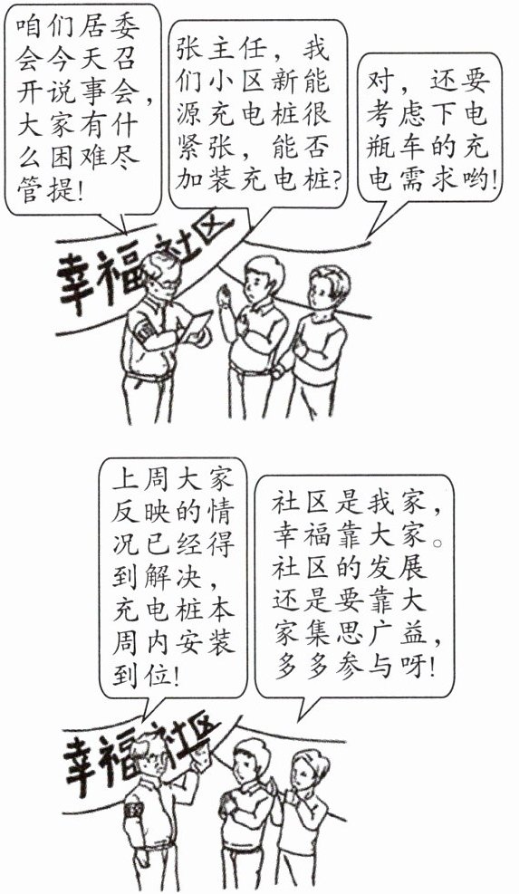 3.①居委会召开说事会,广泛搜集业主生活中存在的问题,坚持了人民当家作主和协商民主。②切实解决好业主反映充电难的问题,贯彻了全过程人民民主。③社区的发展要靠大家集思广益,多多参与,体现了有事好商量,众人的事情由众人商量的民主真谛,落实了基层群众自治制度等。(其他合理表述亦可酌情给分)