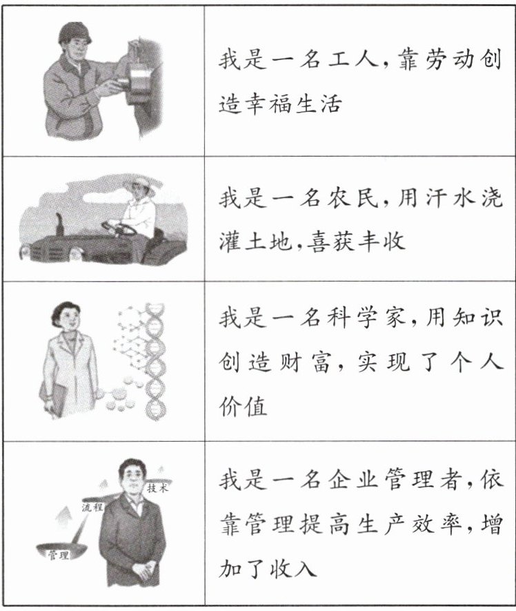 5. [教材P5探究与分享改编] 改革开放以来,我国各行各业的劳动者通过不同的方式创造着财富。