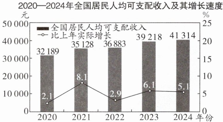 注:2020-2024年,我国全年国内生产总值增长速度分别为2.2%、8.4%、3.0%、5.2%、5.0%。(数据来源:中华人民共和国2024年国民经济和社会发展统计公报)