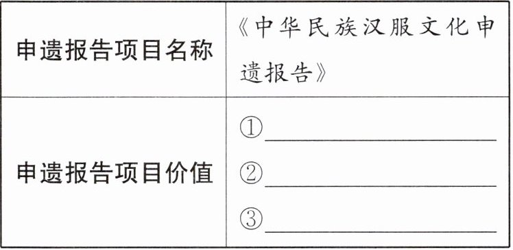 (3) 创新设问·申遗报告 请从文化的角度,尝试写一份简易版的汉服申遗报告。(6 分)