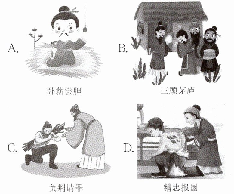 2. 跨学科·历史 爱国主义自古以来就流淌在中华民族血脉之中,去不掉,打不破,灭不了,是中国人民和中华民族维护民族独立和民族尊严的强大精神动力。下列成语典故能体现这一美德的是( )