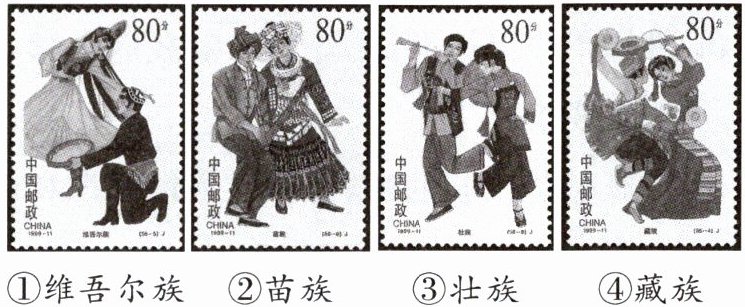 C.图③:壮族是我国人口最多的一个少数民族,广西壮族自治区是我国的一个沿海自治区
