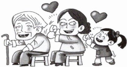 (2)【读图】下图是一幅题为《一家三代》的漫画,请对漫画的画面内容及寓意进行说明。要求:①主要信息完整、准确;②语言简明,说明顺序合理;③不超过80个字。
