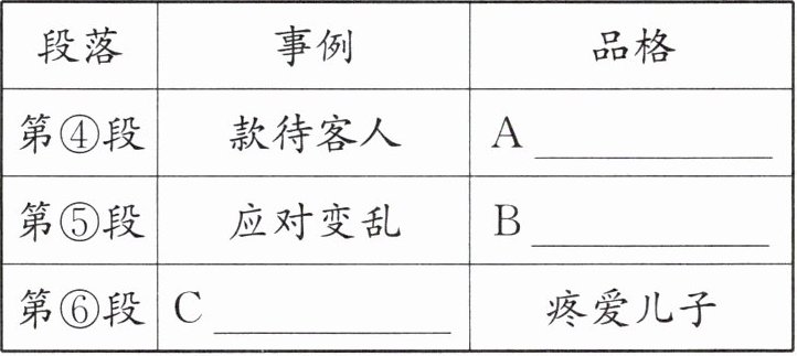 13. 母亲的品格是通过一件件的事情展现出来的。阅读第④—⑥段,分析母亲的形象,完成表格。