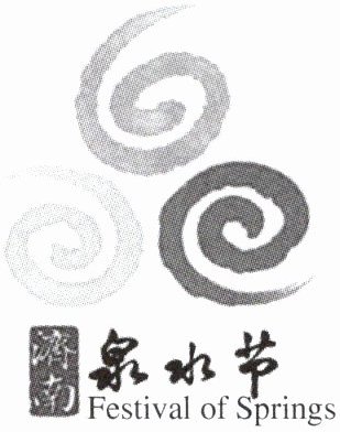 (1)示例:济南泉水节标识运用传统水纹组合而成草书“泉”字;三个相互交融的旋涡状代表的是天、地、人三者之间的和谐统一;类似手印纹的效果代表济南人的纯朴和诚信,充满人文色彩;水墨效果彰显泉城的文化气质之美。