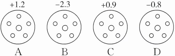 8. 某实验室检测 A,B,C,D 四个元件的质量(单位:g),超过标准质量的克数记为正数,不足标准质量的克数记为负数,则下列最接近标准质量的元件是( )