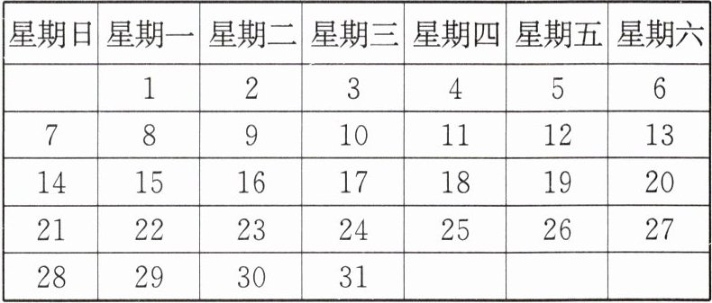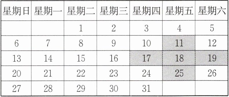 (1)小艳国庆假期外出旅行三天,三天日期数之和是 12,小艳是星期几出发的?
