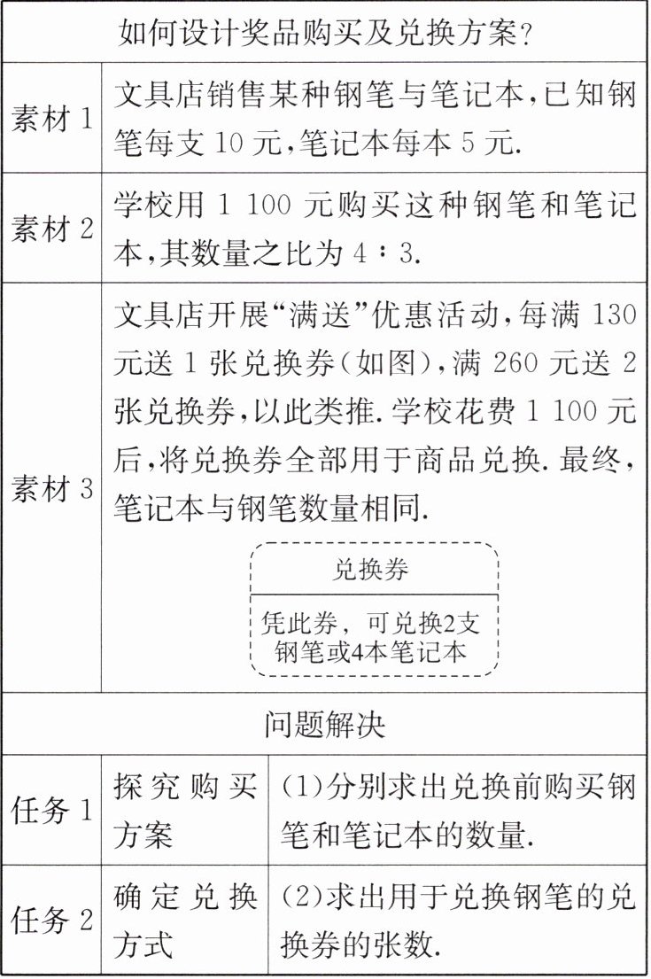 12. (10分)[2025西安模拟]国际禁毒日到来之际,某市策划了以“健康人生绿色无毒”为主题的禁毒宣传月活动,某班开展了此项活动的知识竞赛,学习委员为班级购买奖品后与生活委员对话如下: