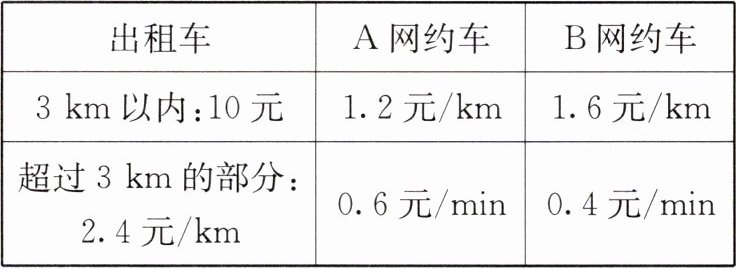 (2)如果乘车路程为xkm(x>3),使用出租车出行,需支付的费用是______元,使用A网约车出行,需支付的费用是______元;