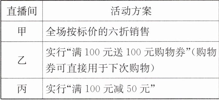 (1)在甲直播间购买更合算.理由略