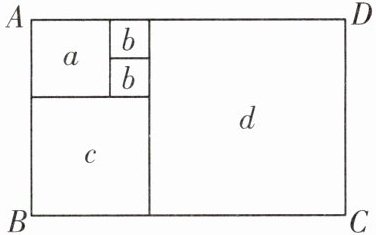 8. 如果一个长方形内部能用一些正方形铺满,既不重叠,又无缝隙,就称它为“优美长方形”.如图,“优美长方形”$ABCD$的周长为$26$,则正方形$d$的边长为______.
