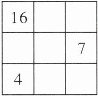7. [2023 德阳]在初中数学文化节游园活动中,被称为“数学小王子”的王小明参加了“智取九宫格”游戏比赛,活动规则是:在九宫格中,除了已经填写的三个数之外的每一个方格中,填入一个数,使每一横行、每一竖列以及两条对角线上的$3$个数之和分别相等,且均为$m$(九宫格每一横行、每一竖列以及两条对角线上的$3$个数之和等于最中间数的$3$倍).王小明抽取到的题目如图所示,他运用初中所学的数学知识,很快就完成了这个游戏,则$m =$______.