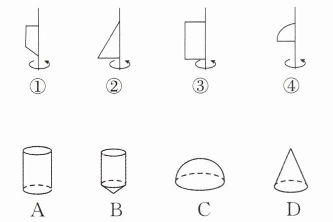 6. 如图,将第一行的图形绕轴旋转一周,便得到第二行的几何体,把有对应关系的平面图形与立体图形连接起来.