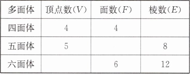 11. 【空间观念】欧拉公式讲述的是多面体的顶点数(V)、面数(F)、棱数(E)之间存在的数量关系.
