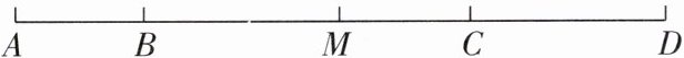 13. 如图,$B$,$C$两点把线段$AD$分成$2:5:3$三部分,$M$为$AD$的中点,$BM = 6\mathrm{cm}$。求$CM$和$AD$的长。