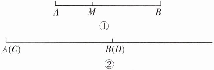 (1) 如图①,$ M $ 是线段 $ AB $ 的三等分点,满足 $ BM = 2AM $,若 $ AB = 9 \mathrm{cm} $,则 $ AM = $______$\mathrm{cm}$。