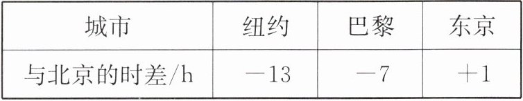 6. [2024娄底模拟]下表列出了国外几个城市与北京的时差(正数表示同一时刻比北京时间早).